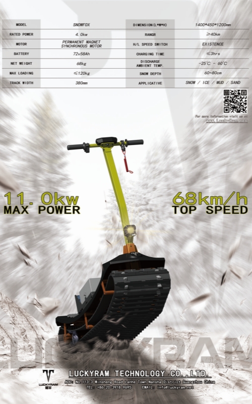 Ipinakikilala ang Luckyram Electric Snowmobile-Snowfox, isang premium na pagbabago sa kadaliang kumilos ng kuryente. Ipinagmamalaki naming mag-alok ng isang 2-taong warranty sa mataas na kalidad na ito, 100% na de-koryenteng sasakyan. Dinisenyo para sa Skiing Fanatic.